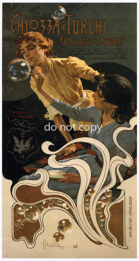 chiozza e turchi woman blowing soap bubbles vintage advertis