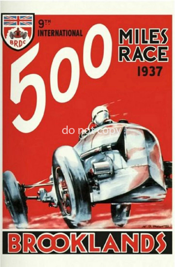 Vintage 1937 Brooklands 500 Miles Race Motor Racing Poster