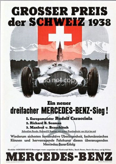 Vintage Mercedes Benz 1938 Schweizer Grand-Prix-Motorsport-Poster